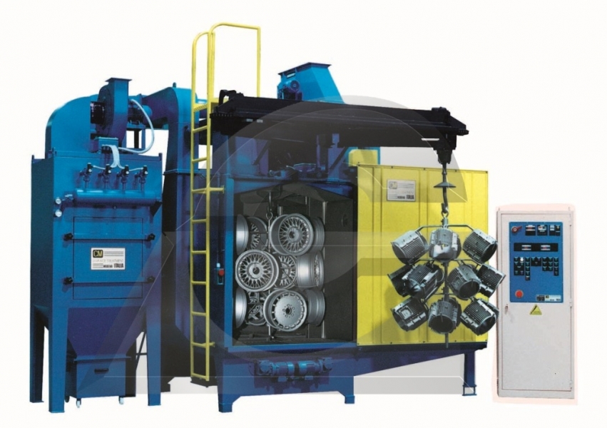 Disponíveis granalhadoras com um ou vários bastidores e com a possibilidade de oscilação, alem da habitual rotação a 360º.